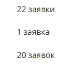 Например, 1 заявка, 2 заявки, 10 заявок...